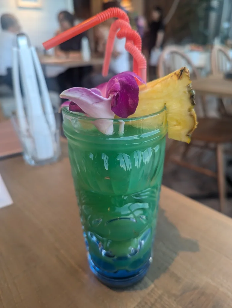 ドリンクは、「ブルーハワイ」「チチ」「ピニャコラーダ」などのハワイアンカクテルやモクテルのほか、おかわり自由のソフトドリンクもあわせ約60種類を取り揃えている。