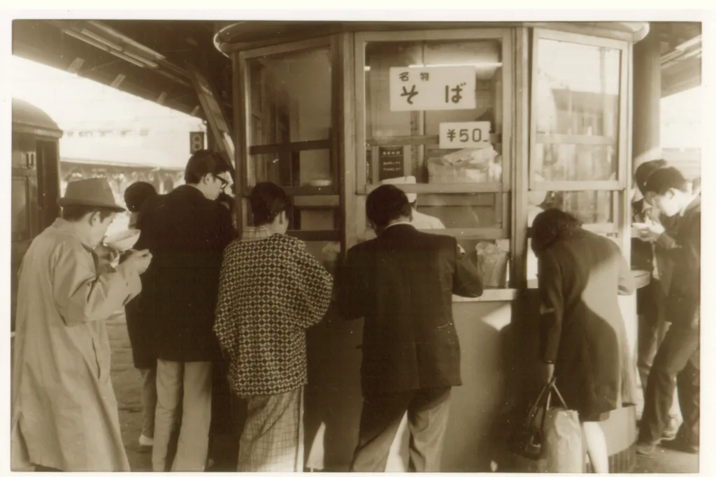 「当時の電車は、車窓を眺められるようにいすが外を向いていて、車内にえきそばを持ちこむことができたんですよ。食べ終わった丼鉢は床に置いておくと国鉄(現在のJR)の車掌が回収してくれたんです」と竹田社長は話す。