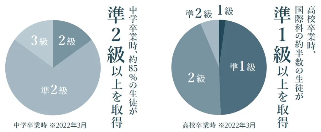 「国際科」の約半数の生徒が準1級以上を取得し、加えて「普通科」も含めた準2級以上の取得者は9割以上を占める。一般的な高校生の準2級取得について、文科省の目標値では5割、大阪府平均も約4割強にとどまる。どんなカリキュラムを展開しているのか、同校の篠原寛頼教頭に紹介してもらった。