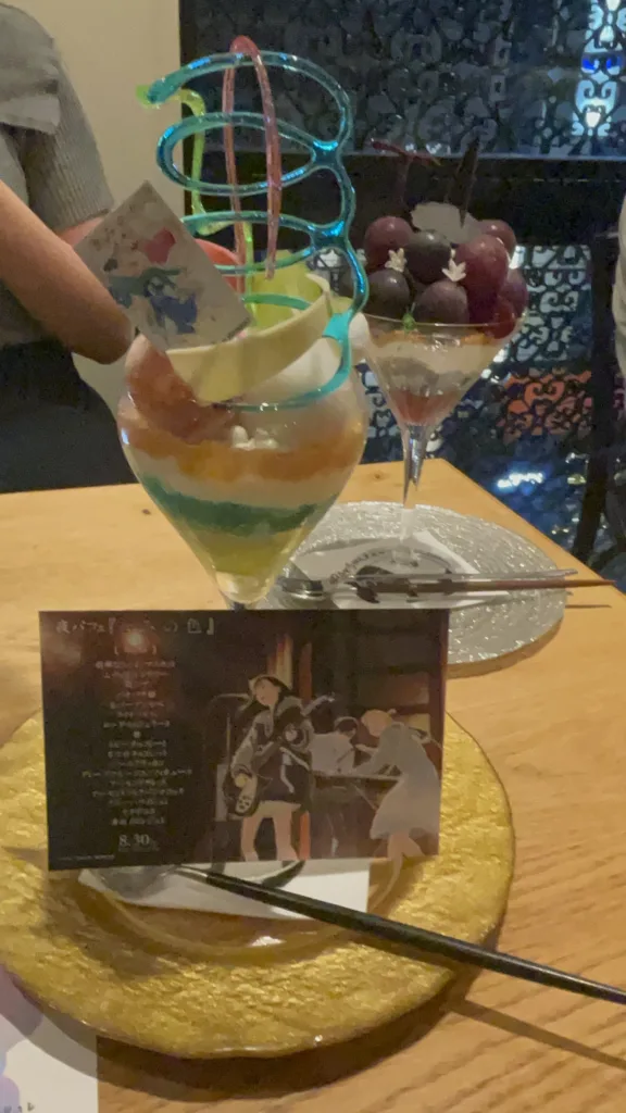 一瞬通り過ぎそうになりながらも、看板を目印にビルの3階へ 。十数種の選りすぐり素材から、パフェを提供。中には、アニメとコラボしたパフェも用意。常連客は「〝夜パフェ専門店〟の発祥は北海道なんです。ここは何を食べてもおいしい」と話す。