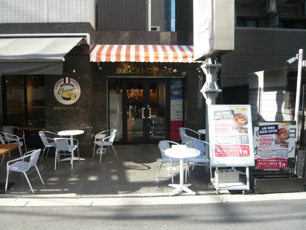 ■原価ビストロチーズプラス西梅田店/大阪市北区曽根崎新地2-1-9/電話06(6136)5020