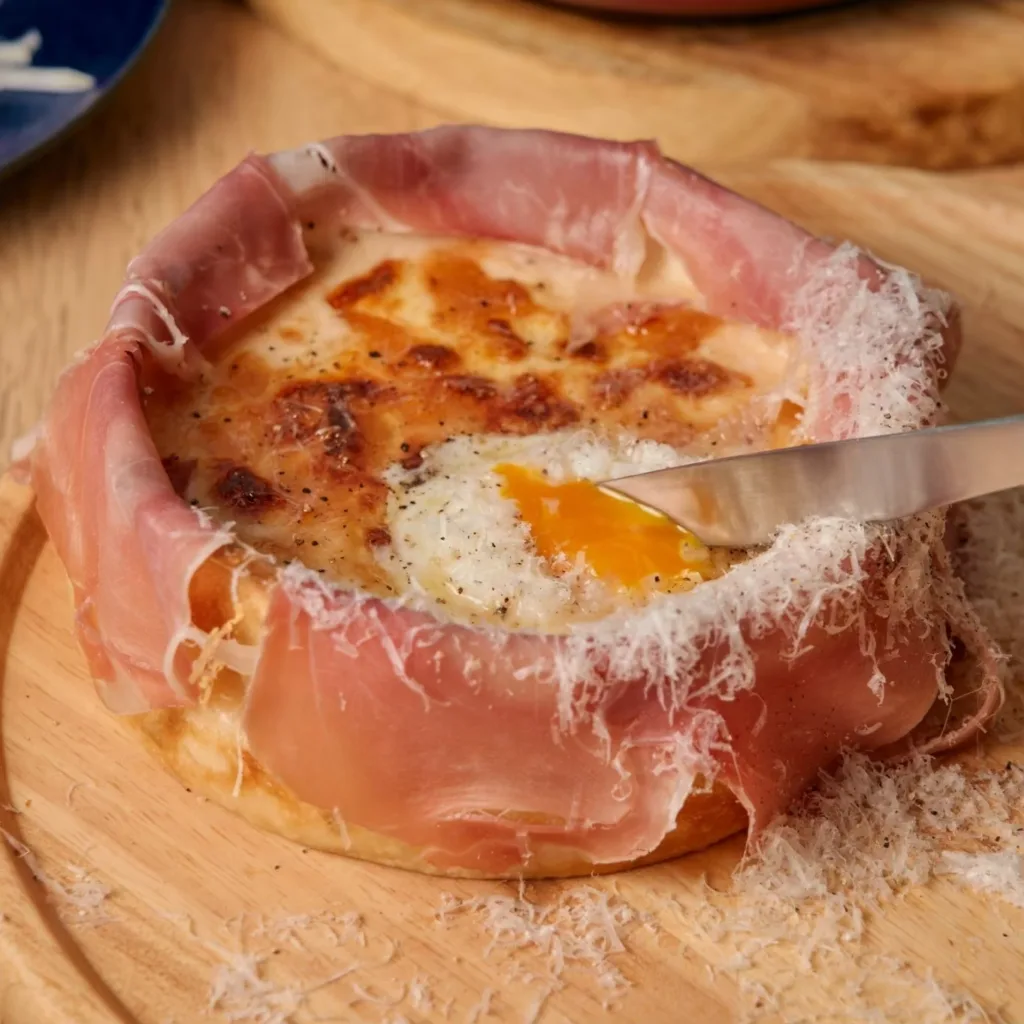 看板メニュー「生ハム温玉シカゴピザ」