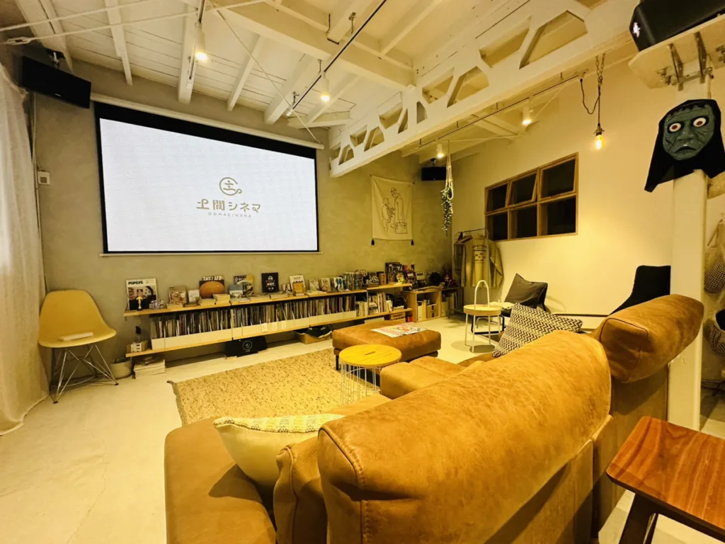 館長の吉田さんの自宅の土間を改装したその名も「土間シネマ」。学生時代には、映画鑑賞後に同じ映画を観たおじさんたちと感想や意見交換をしていたが、今では大勢が同じ映画を観ても、館内が明るくなるとそそくさと帰っていく様子に寂しさを覚えたという。同所では、「同じ映画を観るために集まった人たちで意見交換も楽しんでほしい」と、鑑賞後にはカフェタイムが設けられている。