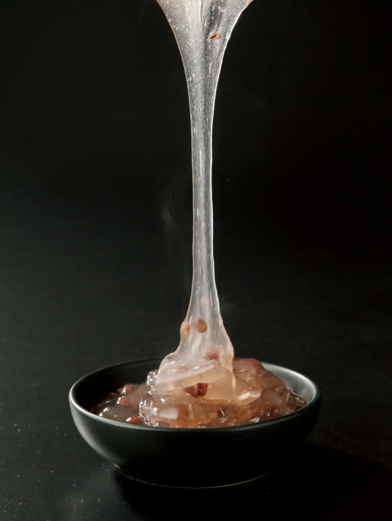 看板商品は、あずきが練りこまれたわらび餅に、色も香りも濃いきな粉をたっぷりかけた「とろとろわらび餅」。名前の通り爪楊枝が刺さらないほどとろとろしているため、割り箸で食べるというスタイルも個性的でおもしろい。この食感を実現するために、特別な加工材料をほとんど使わず、わらび粉・砂糖・水の配合や炊く時間を何百回と試行錯誤したという。今では1日平均300個が売れる人気を誇る。
