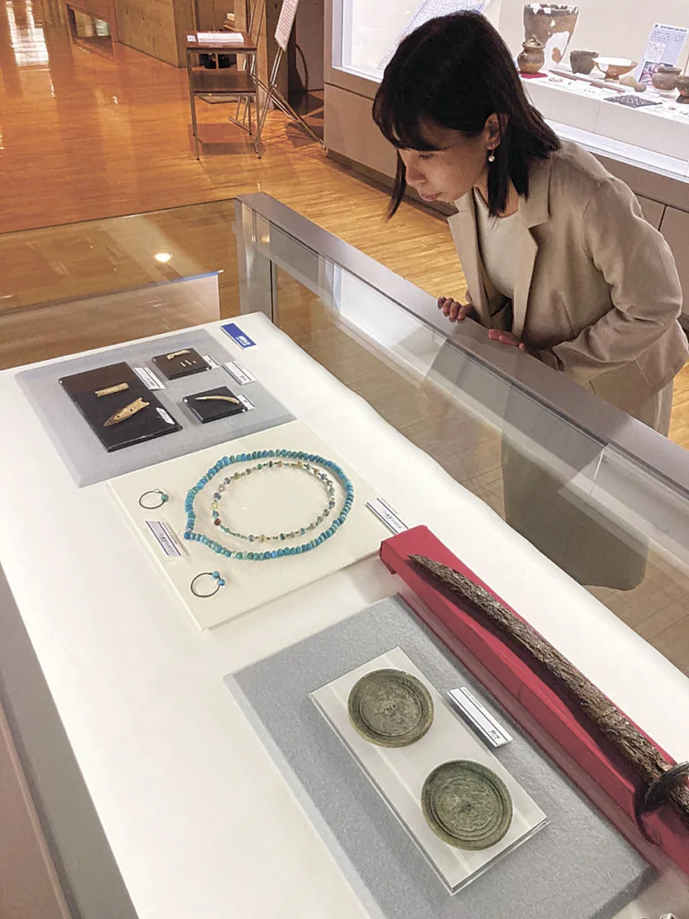 近つ飛鳥博の地域展では、同館周辺に約250基の古墳がある一須賀古墳群の出土品の中から、渡来人の影響が色濃いミニチュア炊飯具、金属製やガラス製の装身具などを展示している。