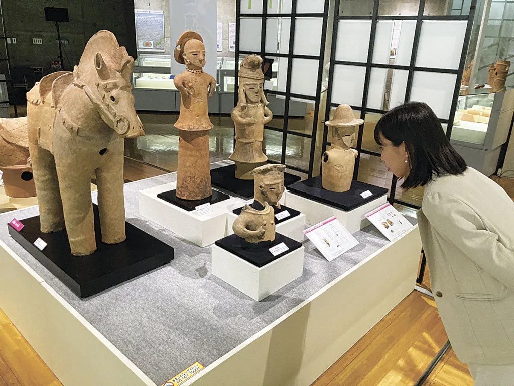 一方の近つ飛鳥博では、古墳時代の〝ぴったんこ〟の埴輪(はにわ)が目玉の一つ。群馬県の赤堀茶臼山古墳で出土した大型の「鶏形埴輪」がそれで、古墳から約3㌔離れた釜ノ口遺跡で出土した埴輪片と、約1500年の時を経て接合した。