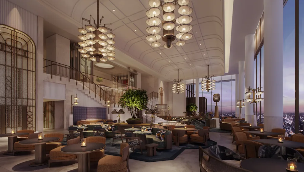 ヒルトンも日本初上陸となる、最上級ラグジュアリーブランド「ウォルドーフ・アストリア大阪」をパークタワーの2階・28階~38階にオープンさせる。50平方㍍を中心とし、ラグジュアリーでありながら利便性を併せ持つ252室の客室、ラウンジ&バー「ピーコックアレー」、レストラン、総面積1,000平方㍍を超える宴会場や会議室、チャペルまで設置する。