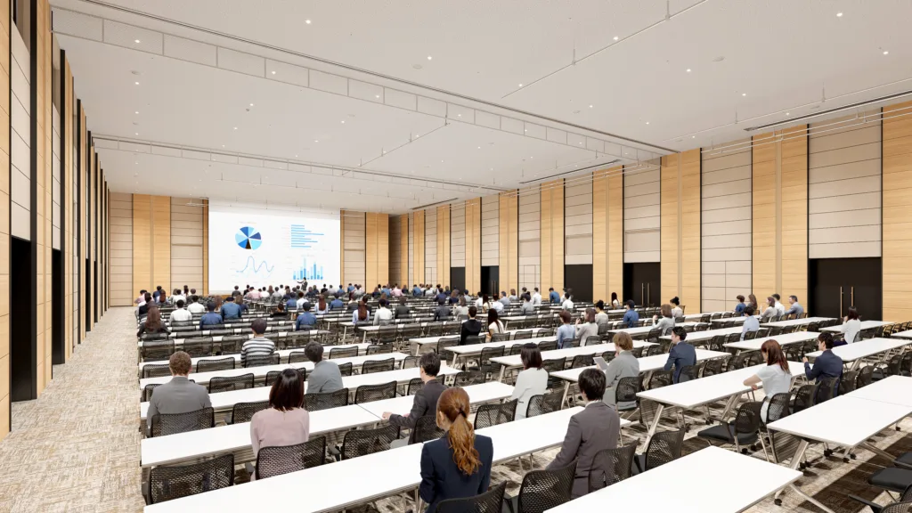 4階にはカンファレンス施設「コングレスクエア グラングリーン大阪」が入る。190平方㍍から740平方㍍のホールをはじめ、35平方㍍から160平方㍍の会議室などを用意。会議室は部屋ごとにテーマを設けることで変化をつけ、豊かなアイディアやコミュニケーションが生まれる工夫が施されている。
