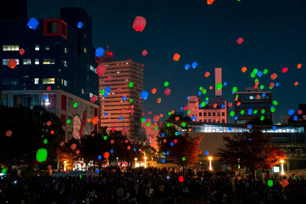 カラフルなランタンが夜空を舞う「扇町ランタンフェスタ」が11月16日に扇町公園(大阪市北区)で開かれる。今回で3回目。