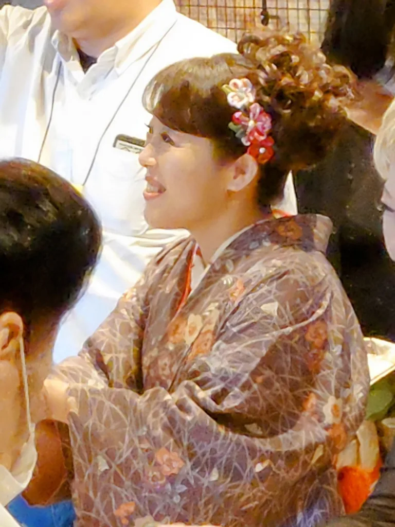 この日の着物は師匠の奥さんからの留め袖で西崎緑さんの踊りの振り付けの時に手を動かしやすかったが、ミュージックビデオで着用しCDジャケットにもなっている振り袖姿だと自身の手足サイズが小さいためうまく手のひらが返らないことも多くいつも冷や汗。「それでもね、私ようやく147㌢まで背が伸びたんです。先輩方から着物を頂く機会も多いんですけどサイズ的に全部着られますからありがたい。背が高い女性歌手の方が着物合わせは大変だと思います」と発想は常にポジティブに。