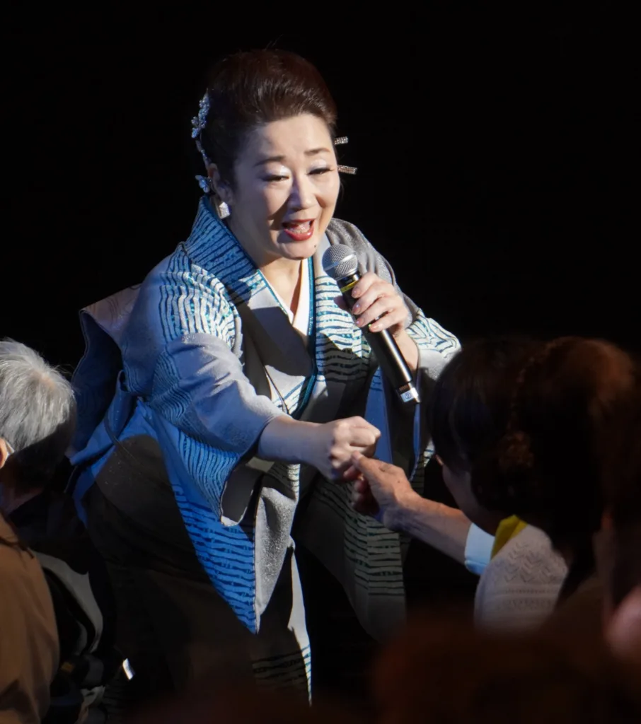 「看護師時代は病院で体を、歌手になって舞台から歌で心を、それぞれ健康になって頂く。これはずっと変わらない。曲の合間には簡単にできる体操やストレッチをお客さまに紹介しています」と特技をフルに生かしている。
