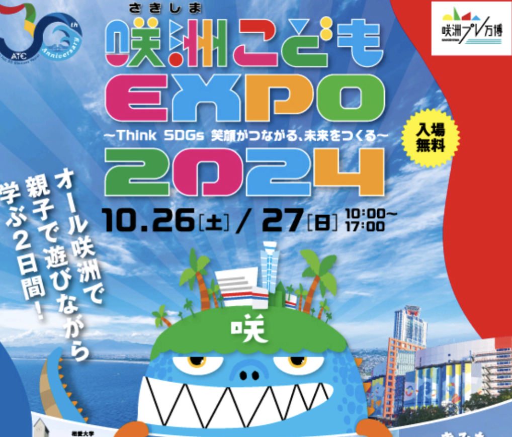「咲洲こどもEXPO2024~Think SDG笑顔がつながる、未来をつくる~」が10月26・27日に開催される。会場はATC(アジア太平洋トレードセンター)、大阪咲洲庁舎(さきしまコスモタワー)、西尾レントオールR&D国際交流センター、森ノ宮医療大学、相愛大学の5施設。イベント期間中はスタンプラリーや咲洲イラストマップで各会場をつなぎ、咲洲全体がおまつりムードで満載となる。