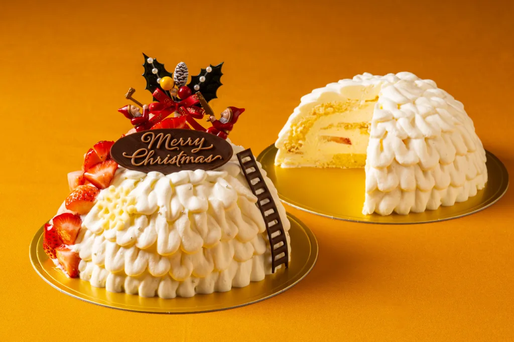 12月8日から約1カ月間、国中が〝おとぎの国〟のようなクリスマスムードに一変するイタリアから飛び出してきたような〝雪〟をイメージした「Snowdome」(=写真)。ズコットケーキに北海道産生クリームと甘い苺をたっぷりサンドしている。