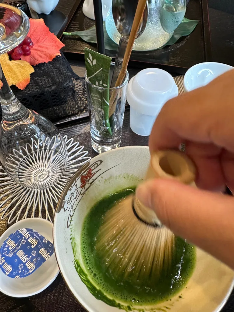 「カジュアル抹茶を楽しむ」ワークショップは、まず仲間意識を高めるためにとウェルカムティーで乾杯。実際に抹茶を点てたり、作法を学ぶことができるだけでなく、茶筅(ちゃせん)がなくてもシェイカーがあれば自宅で簡単に自分好みの抹茶ラテが作れる方法を伝授してもらえる。