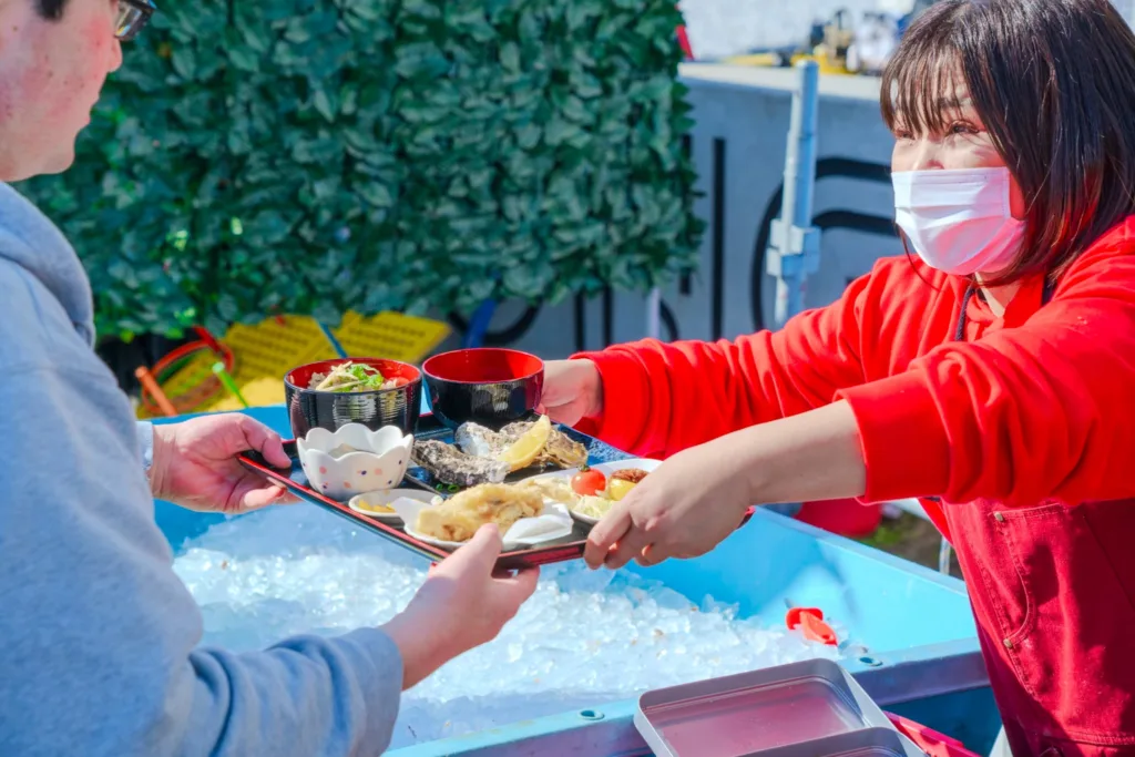 牡蠣の食べ比べや蒸し牡蠣販売(産地別要確認)、SNS拡散で参加できる抽選イベントが行われる。このほかにも、月に一度のイベントとして、大道芸などのパフォーマンスや謎解き、ワークショップなども実施される。