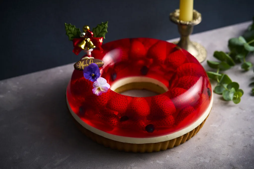 このほかにもリースをかたどったタルトの「いちごの誘(いざな)い」(限定数20個)や大きなリボンでプレゼントボックスをイメージしたケーキ「リュバンホワイト」と「リュバンブラック」がある。