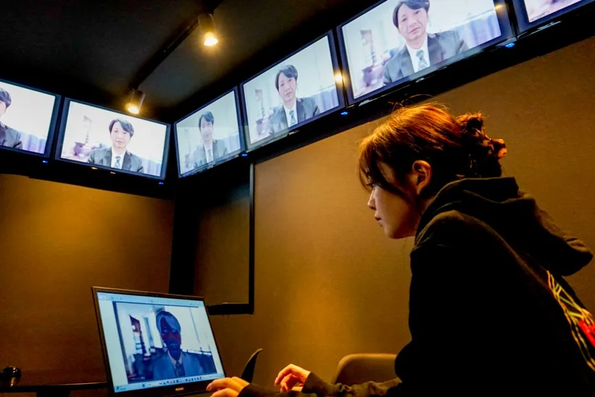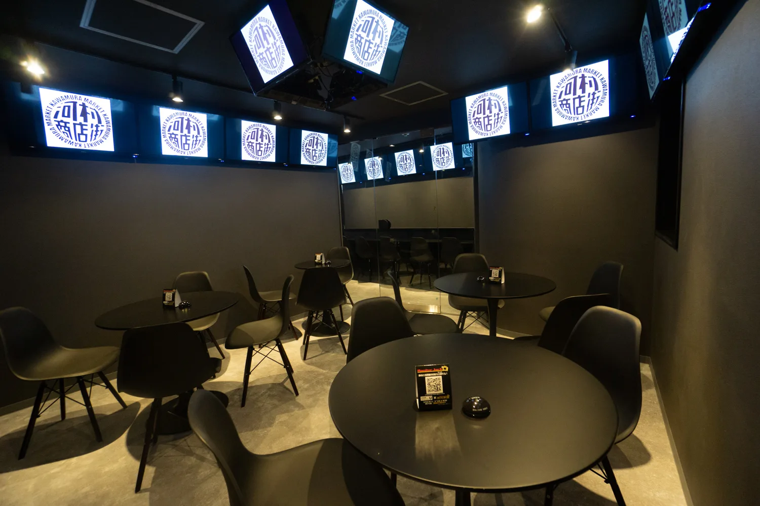 また同店の特徴を活かした企画として、緊張感のある空間でオンライン会議を実施できる「逃げられないオンライン会議」プランを平日限定で用意。店舗奥の個室を貸し出し、室内に設置した14台全てのモニターに相手の顔が映し出される中、商談や打ち合わせを行うことができ、1時間5000円(ワンドリンク付き)で利用できる。ビジネスからプライベートまで、一風変わった過ごし方ができそうだ。