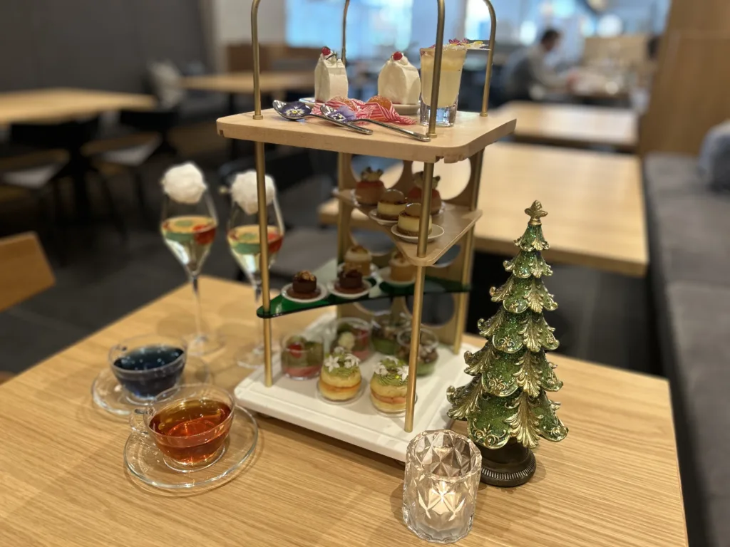 大阪の「あめちゃん文化」は“あめ“がただのお菓子ではなく、人との繋がりを深める役割を持っている。大阪のおばちゃんが気軽に「あめちゃんどうぞ」と渡す風景はなんとも大阪らしい温かい光景だ。この“あめ文化“にクリスマスのエッセンスを取り入れたアフヌンはスパークリングワイン、10種類のスイーツやセイボリーとともに8種類の紅茶がフリードリンクで楽しめる内容となっている。