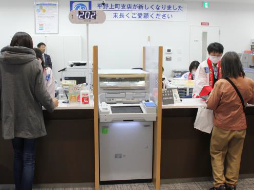 当日の午前9時には開店に先立ちオープニングセレモニーが開催され、理事長の高橋知史さんらがテープカットを行った。新店舗は、同信金初の「コミュニティブランチ」として開設。窓口併設型の「窓口ATM」や、店舗内のカフェコーナーなどを設置し、今まで以上に地域との関わりを深めることを目的とした店舗となっている。