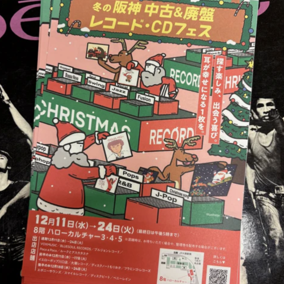 毎年クリスマス前に開催されるこのイベントは、大阪のレコードショップ「VOX MUSIC」はじめ全国からレコードショップが集まる。品ぞろえはジャズや日本のロック&ポップス、ソウル、レゲエ、ヒップホップのほか、クリスマス関連レコードや廃盤レコードなど約10万点が並ぶ。