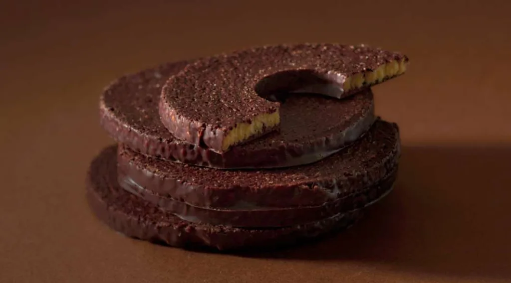 同商品は、グランシェフで社長の山本隆夫氏が構想20年の苦労を重ね、「人生の旅に寄り添う焼き菓子」というコンセプトをもとに生まれた新食感商品。米国のチョコレート大会で優勝し世界一の実績を持つ。専用レシピで焼き上げたバームクーヘンに香り高いショコラを染み込ませ、サクサクの食感とカカオのほろ苦さが楽しめ、同店の新定番になると期待されている。