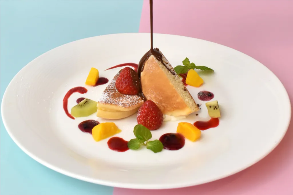 フルーツやソースで自分好みにデコレーションできるパンケーキ