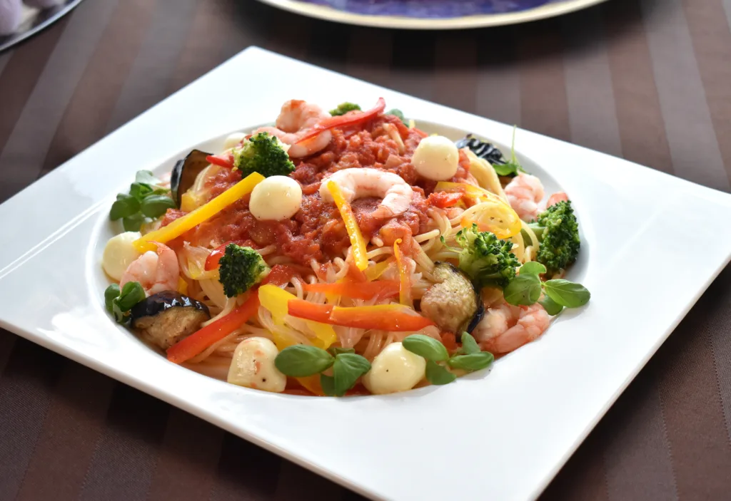 ランチタイムはスイーツの他にもパスタなどの食事も楽しめる