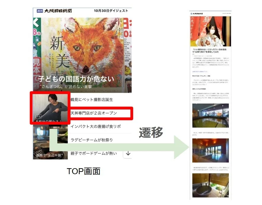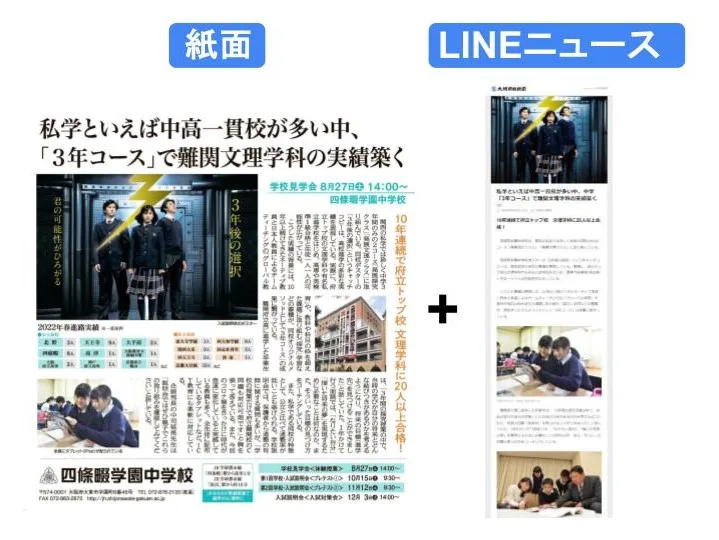 ▼紙面(週刊大阪日日新聞)とLINEニュースの連携事例