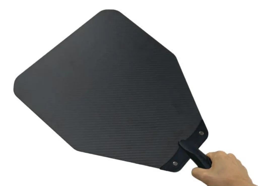 サイズは横約32㌢、長さ約54㌢で重さは約500㌘。グラスファイバー製で表面積はうちわよりも大判。空気抵抗を利用し、あおぐスピードや可動範囲を広げることで負荷を変えられる仕組み。2個を両手持ちすれば、バトルロープと同じ動きもできる。また、各競技のフォームに応じた動きも行えるので、野球やテニス、ゴルフなど器具を使うスポーツは特にオススメという。予定販売価格は1万2800円。