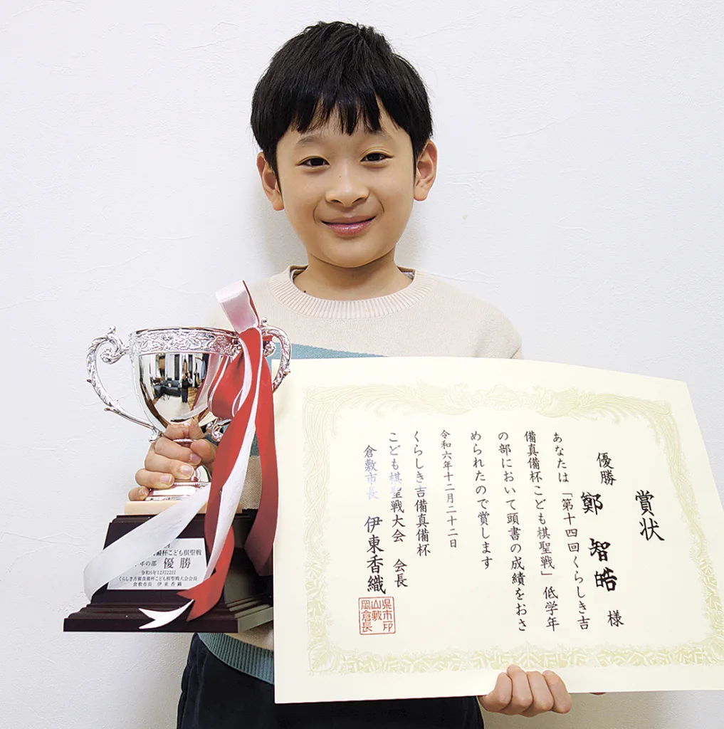 囲碁の小学生日本一を決める「第14回くらしき吉備真備杯こども棋聖戦」が12月21、22日、岡山県倉敷市で開かれ、大阪市住吉区の鄭智皓くん(建国小2年)が低学年の部で優勝した。