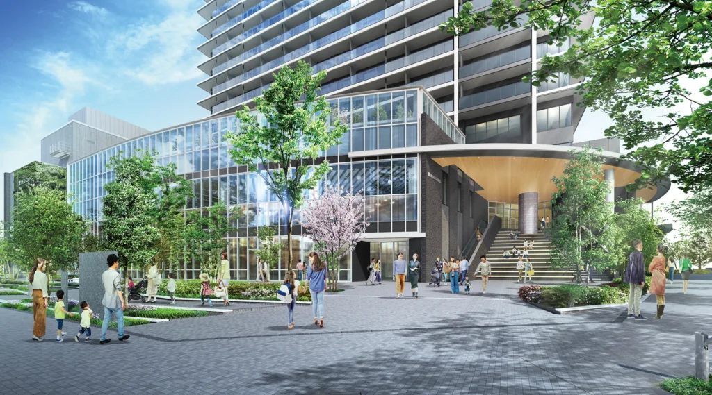 十三駅からほど近い、元・淀川区役所跡地一帯で「官・民・学」による複合開発が進められている。東側敷地(約7300平方㍍)には阪急阪神不動産が地上39階建て、総戸数712戸のタワーマンション「ジオタワー大阪十三」のほか、市立図書館や保育学童施設、スーパーマーケットなどを整備。1階には約2400平方㍍の緑豊かな公開空地を設け、多世代が集い、新たな交流を生み出す「街のランドマーク」を創出する。