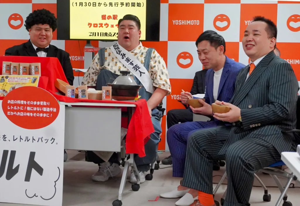 「地方に住みます芸人150人を抱える」吉本興業×「歴史的観光都市として滞在客の消費を拡大したい」奈良商工会議所×「オープンチャットで地域情報交換を目指す」LINEヤフー×「レトルト技術を生かし地域の味を創造する」目利氣358の4者がタッグ組み、奈良県出身の吉本奈良住みます芸人もっち(39)がプロデュースした新しい奈良のお土産定番を目指すご飯のお伴のふりかけ「もっちのうまっちぃオイル漬け」の発売発表試食会が行われ、住みます芸人の先輩でもあるミルクボーイが参加。おいしさにはしが止まらず白飯をおかわりする一幕も。