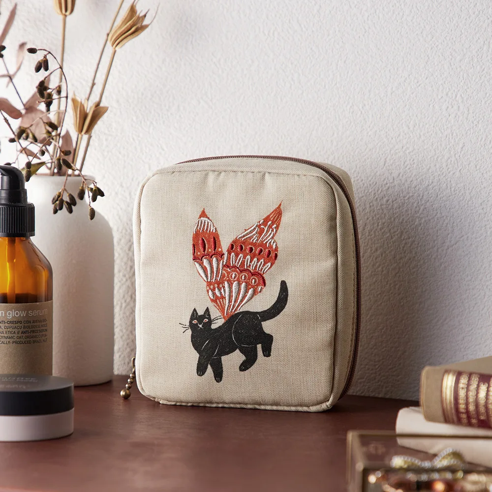 ほかにも、イラストレーターの杉本さなえさんが猫を描いたアイテム「杉本さなえさんコラボ プリントと刺繍でデザインしたコスメポーチ」(3,800円)と、猫好きにはたまらないデザインの商品も多数掲載。