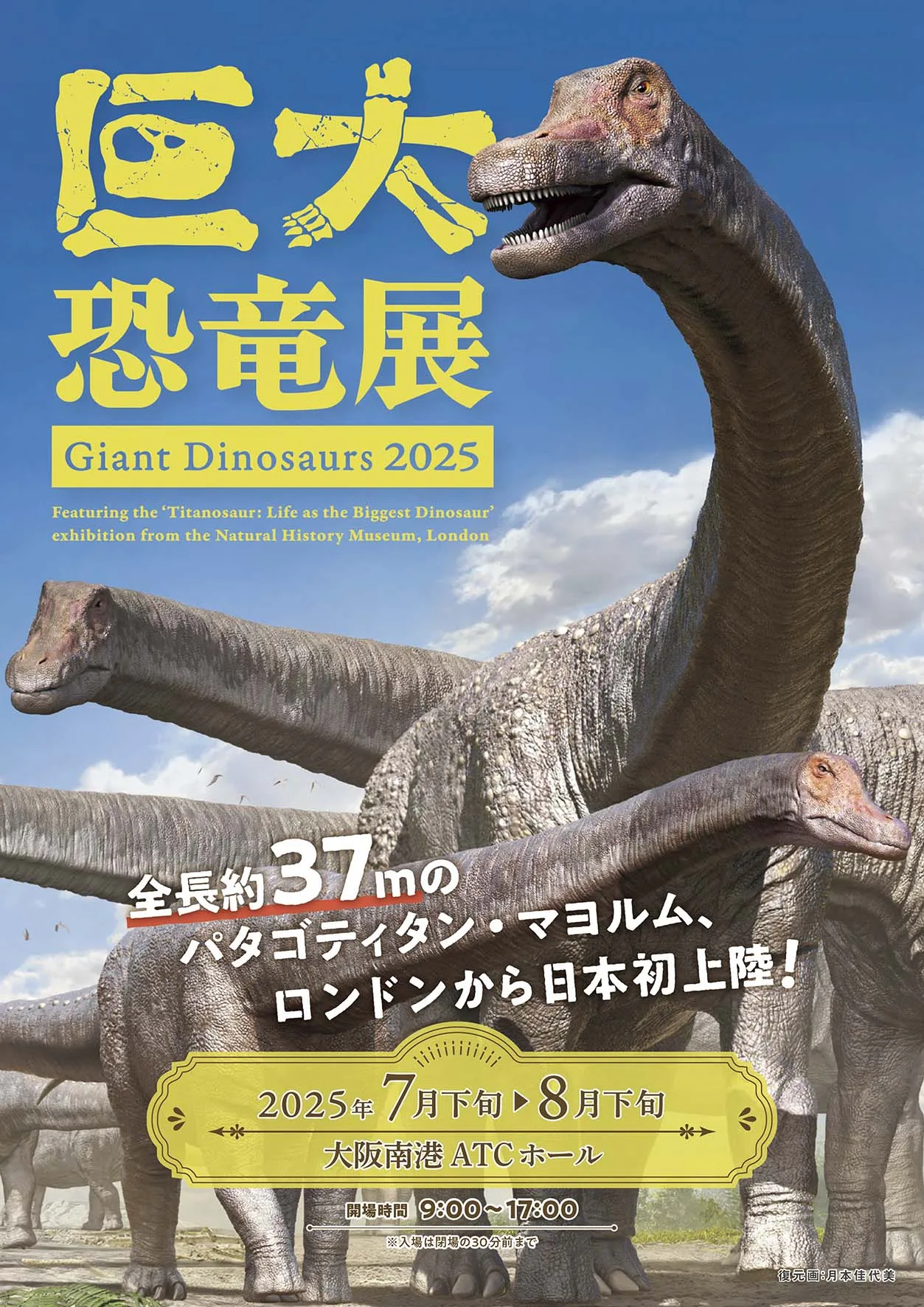 今年の7月下旬~8月下旬にかけて、大阪南港ATCホールで「巨大恐竜展2025」が開幕される。本展は、ロンドンの大英自然史博物館で企画された展覧会の国際巡回展で、昨夏横浜で大好評を博した後、大阪での開催が決定した。