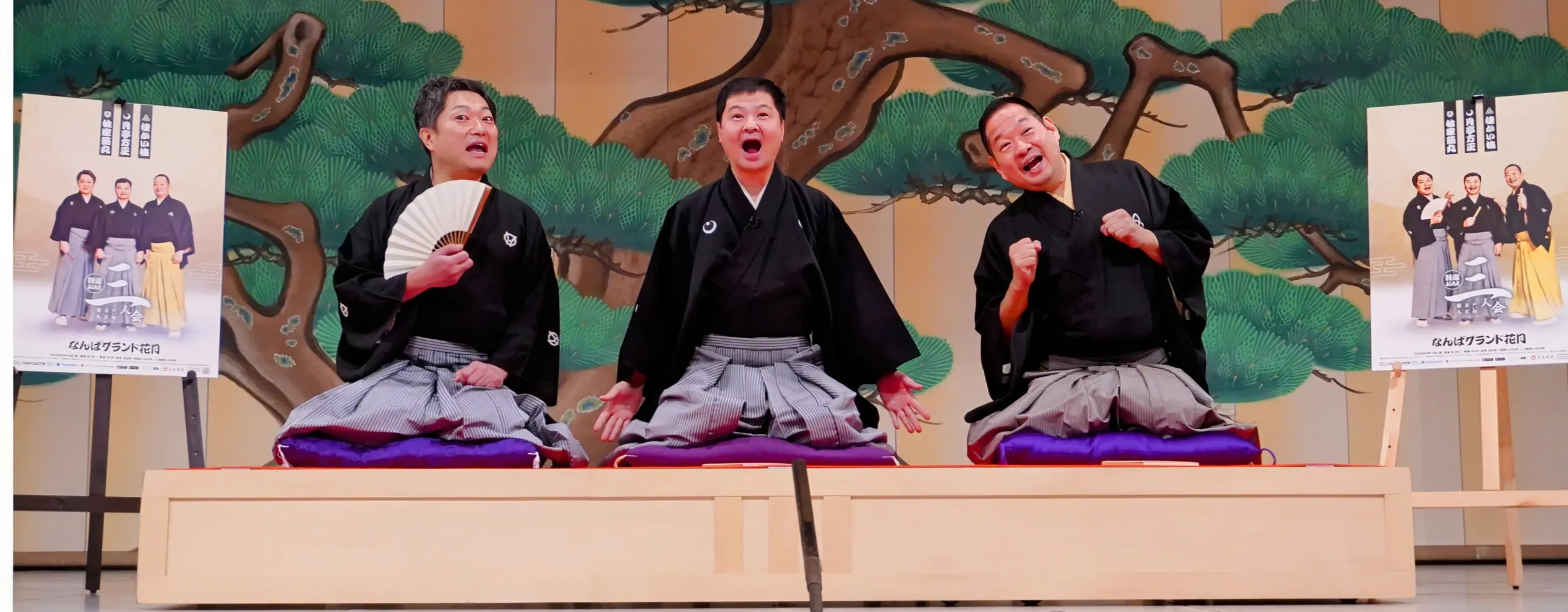 昨年それぞれがNGKでの独演会を成功させ、今年は3人揃って〝特選よしもと〟と銘打っての初の三人会開催が決まった。三人会お約束の出番順抽選は、開幕トーク後にくじで出番順を決定。各持ち時間30~40分で、前の2人後に中入り休憩、最後の1人がトリを取る。当日の演目はこの日高座上で即席の話し合い。まず菊丸が「しばらくやってないので、立ち切れ線香!」と笑いが少ない上方落語屈指の人情噺をチョイス。続いて方生は囲碁好きが意地を張り合う江戸落語の人情噺「笠碁」を「亡き(桂)ざこば師匠がやっておられるのを聞いて感動したから」と選択。最後のかい枝は「う~ん、2人とも人情噺かぁ…」と腕組みして思案した末に大ネタ〝東の旅〟の一部で京都から大阪へ下る川旅船中が舞台の「三十石」を上げた。「2人が人情物なので、僕はハメ物(伴奏)も入る楽しい噺を」と説明。方生が「どういう順番で演じるか分からんけど、互いに化学反応起こすはず。ぜひご覧下さい」とPRした。