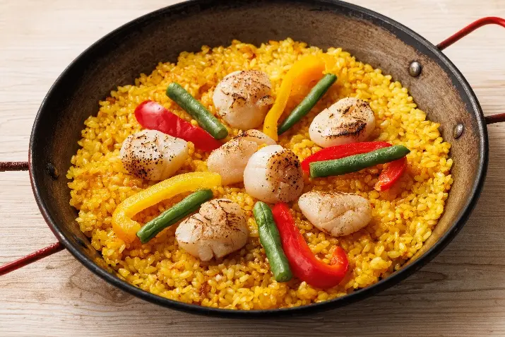 北海道産ホタテのパエリアを直径1・5メートルの巨大パエリア鍋で最大200人前を調理。パエリアの国際コンクールで入賞歴を持つ栗原靖武氏が手掛ける本場の味を堪能できる。