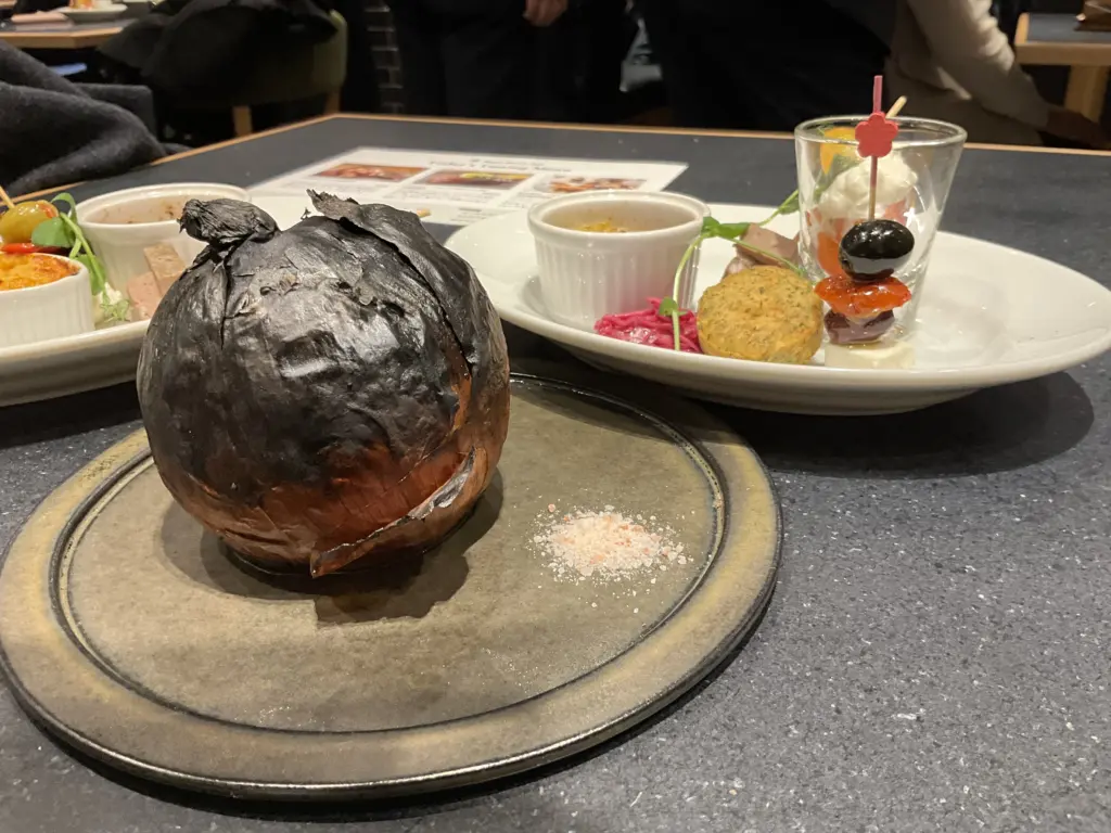 料理は食材の旨味を最大限に引き出すために石窯を導入。400~450度の石窯で焼くことで、水分と旨味がぎゅっと濃縮される。それが一番実感できる料理が「淡路玉ねぎの石窯焼き(880円)」だ。玉ねぎ1つで主役級の迫力、デザートを食べているような甘味で丸々ぺろりと食べられる。