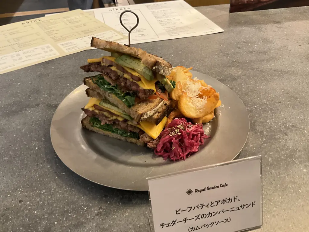 ほかにも、具のボリュームが多くてサンドしきれないホットサンド「ビーフパティとアボガド、チェダーチーズのカンパーニュサンド<カムバックソース>」や、セイボリーやスイーツが1プレートになった「Gardenハイティー」などを取り揃える。