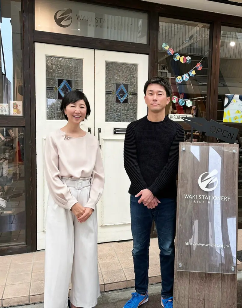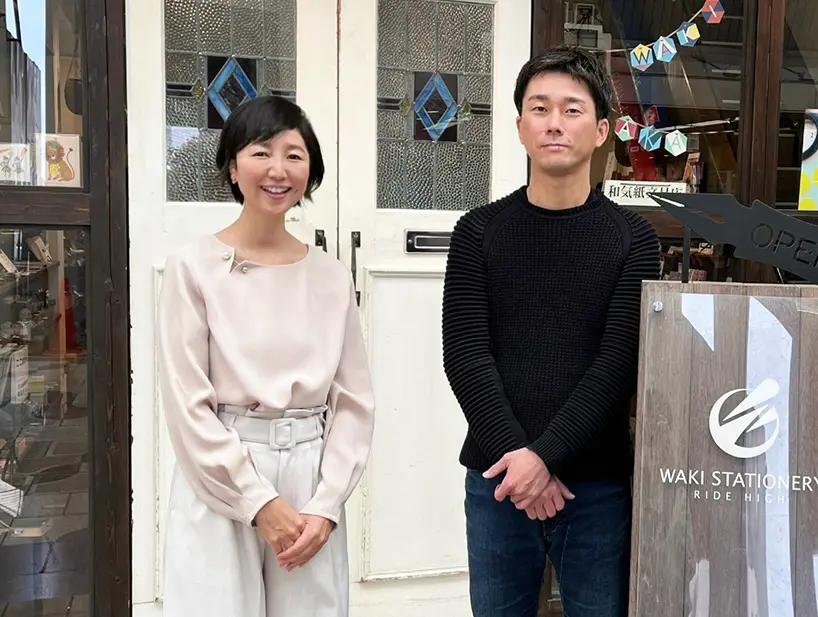 「日本文具の素晴らしさを世界に伝えたい」と話す岸井社長(右)と高田ほのか