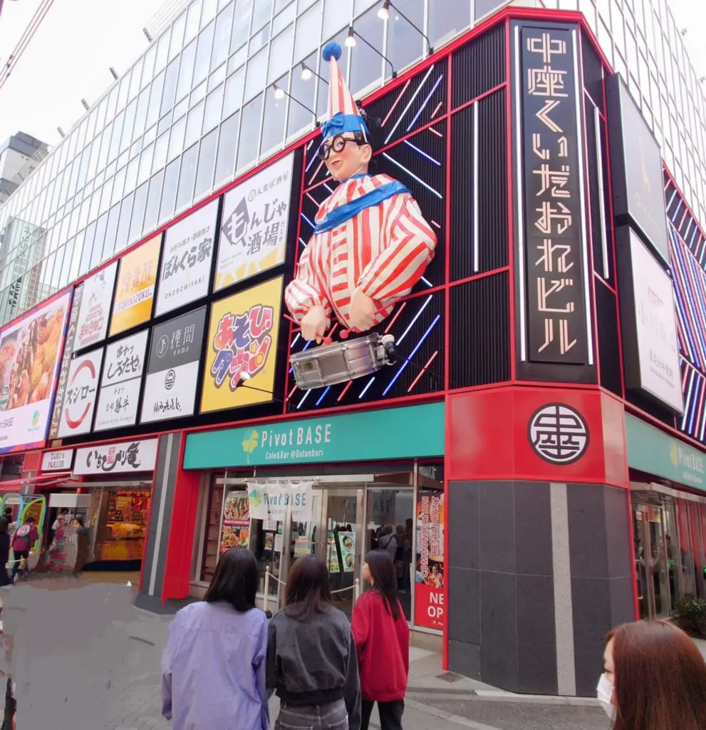 大阪・道頓堀(中央区)の名物人形「くいだおれ太郎」で知られる「中座くいだおれビル」のリニューアル工事が完成。26日のオープンを前に25日、関係者向けに公開された。