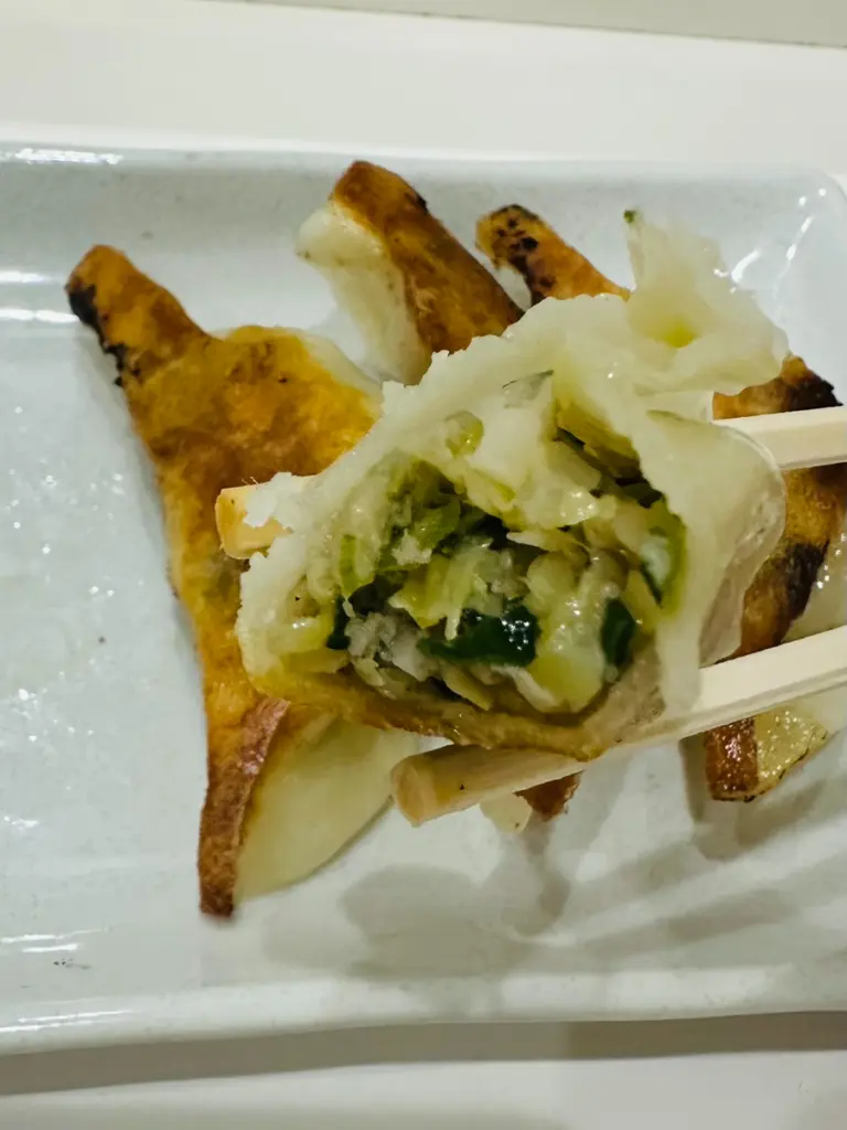 自宅でも餃子を調理するときは、「蒸して焼く」が主流だと思うが、今回の作り方は「ゆでて揚げる」というもの。こうすることで、小麦の甘みを感じられる餃子に仕上がっていく。