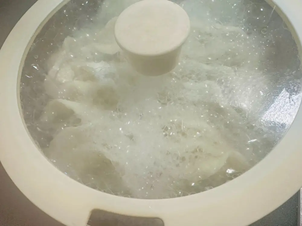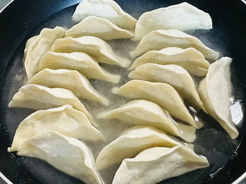 6分後に湯を捨て、餃子が1~2㍉浸るようにサラダ油を入れ、弱火で約6分揚げると完成する。