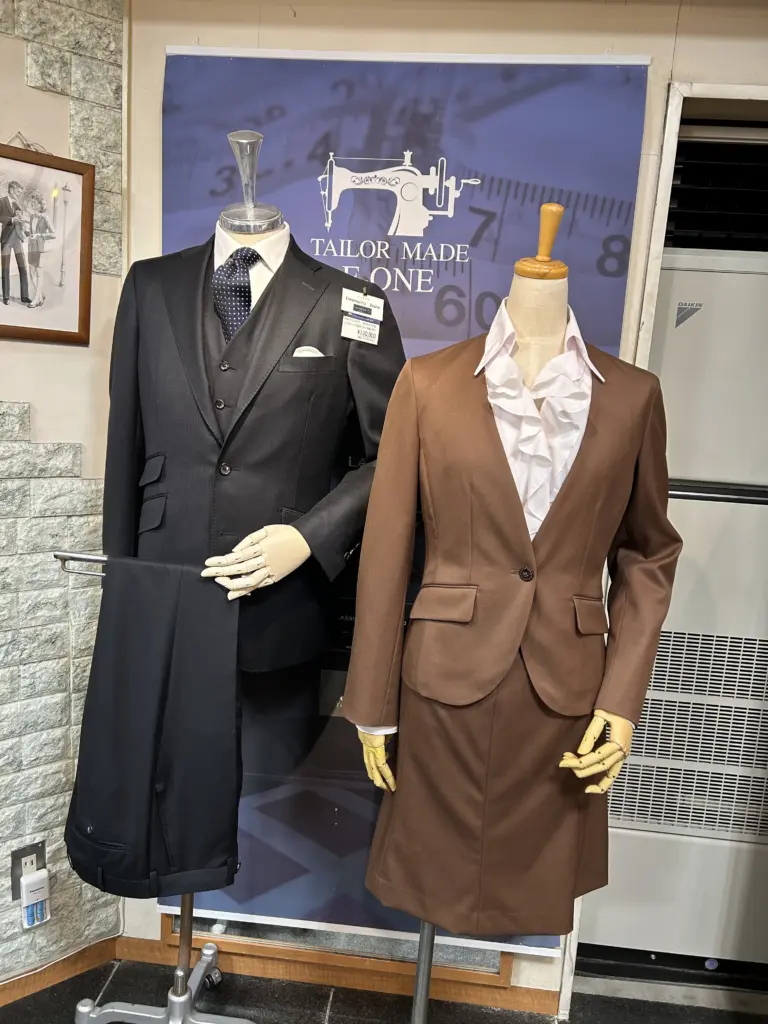 エフワンでは女性ファッションでは余り見かけないフルオーダーでスーツを売っている。パターンオーダーは基本体型のスーツが何着かあり、客が試着して細部を手直しする。対するフルオーダーは全て採寸し1からスーツを仕立てて行くから価格帯も3~5万円ぐらいに上がる。