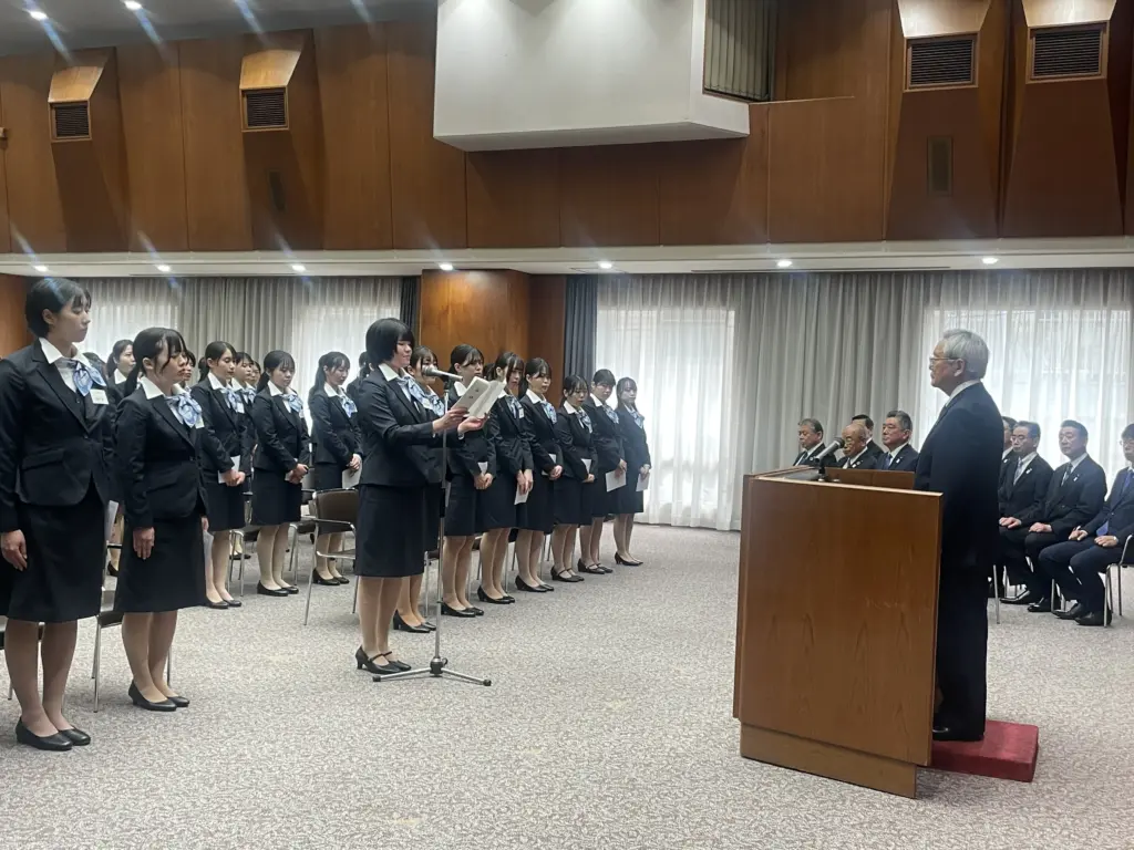 また、新入職員を代表して挨拶した天野那由来(なゆら)さんは、「多くの方々に支えていただき、今日この日を迎えられたことに感謝しています。大阪経済の発展と繁栄に少しでも役に立てるよう、社会人としての自覚を持ち、精一杯頑張ります」と力強く決意を述べた。