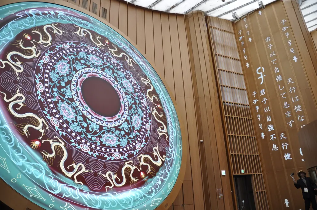 外観は、古代の書物「竹簡(ちくかん)」がモチーフで、119の漢詩がしたためられている。話しかけたら踊るロボットや、「孫悟空」のAIチャット、月の裏側のサンプル展示など、中国が誇る最新技術を楽しむことができる。