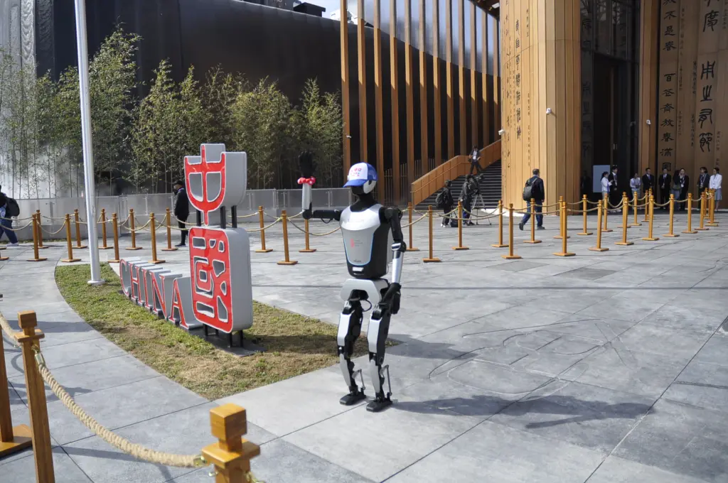 ヒューマノイドロボット「Walker C」が来場者をお出迎え