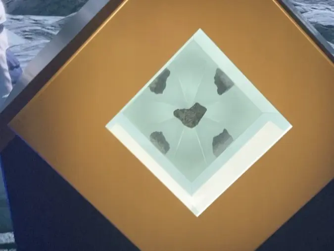 最後の展示では、1970年の大阪万博から再登場、72年にアポロ17号が採取した「月の石」が展示されている。