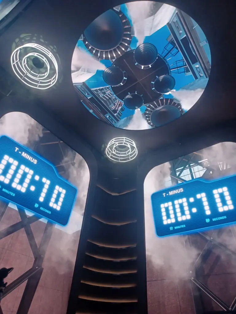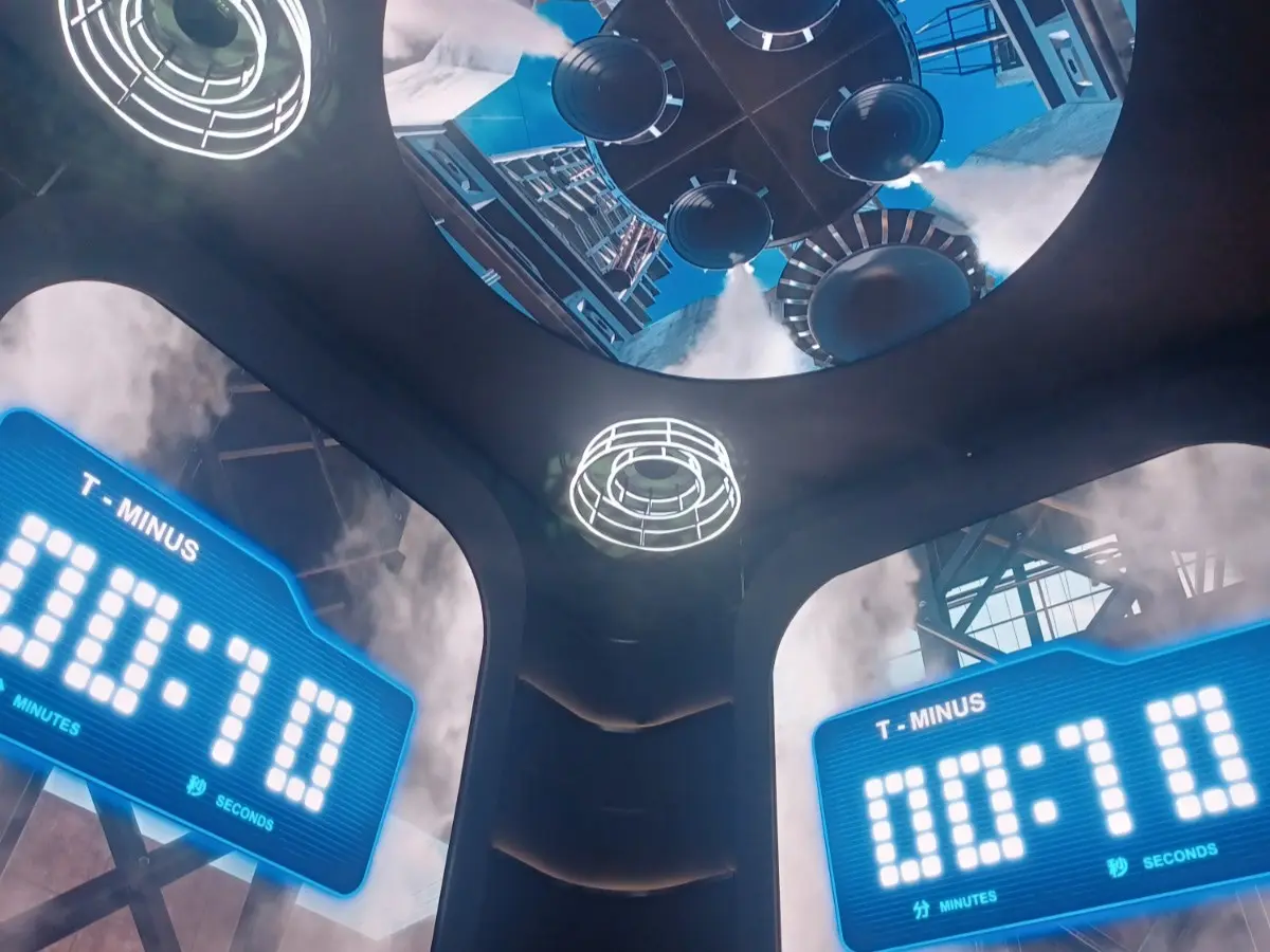 ケネディ宇宙センターから着想を得た展示「打ち上げ:月へ、そしてその先へ」。発射に向けカウントダウンがスタート。発射後は床が揺れ、大音響の没入型体験ができる