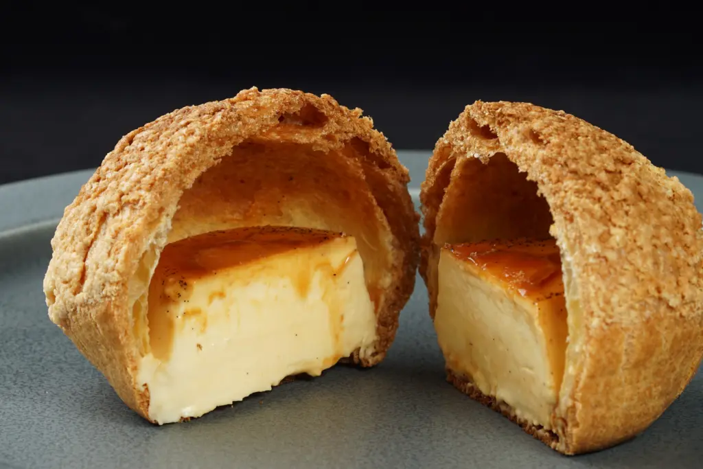 小麦アレルギーの店主が開発し、米粉を使ったサクサクの軽やかなシュー生地に、牛乳不使用で生クリームを用いた通常の8倍濃厚な特製プリンを詰めた一品。プリンは小さめに設計し、空洞を作ることで「サクッ!とろっ!」の極上バランスを実現。価格は税込864円で、売り切れ次第終了となる。