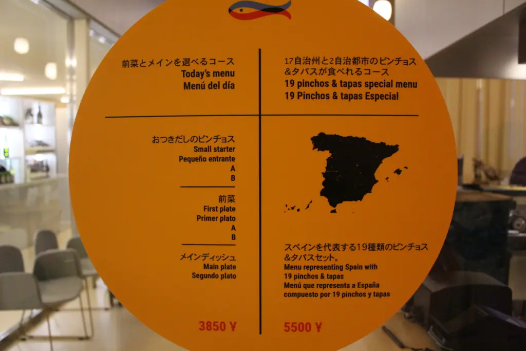 スペインパビリオンの右奥に進むと見えてくるレストランは、「前菜とメインを選べるコース」と並んでスペインの各州から1つずつ選んだタパスを集めたコースが味わえる。